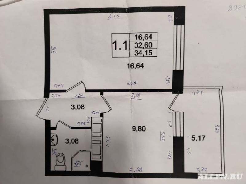 Общая: 33 м2, жилая: 16.6 м2, кухня: 9.8 м2, этаж: 6 (всего: 25), кол-во комнат: 1